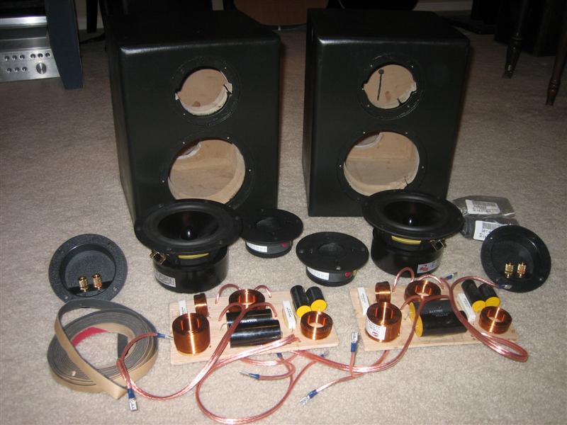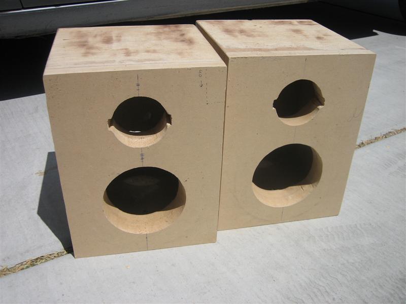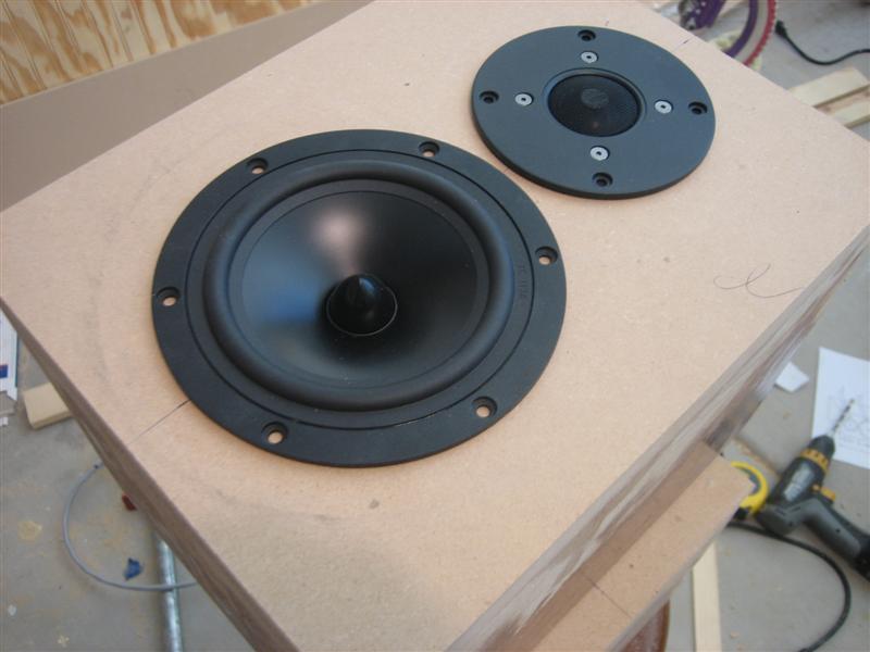 So what was once going to be a killer two-way speaker that I designed, turned into just a remake of these great Encore speakers. Which is fine with me, it's only a slight hit to my speaker-building ego. They look great, though my typical paint job is pretty lousy. I think black paint is the hardest color to paint. Fortunately they sound a lot better than look. (Except for the drivers, they alone do look amazing).